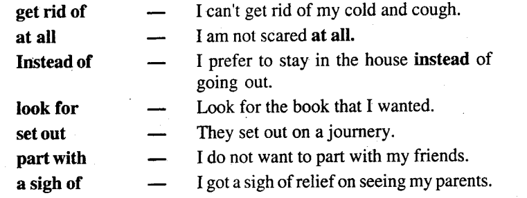 get rid of; at all; instead of; look for; set out; part with; a sigh of.