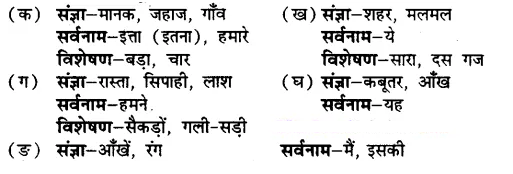 प्रश्न 2 – निम्नलिखित वाक्यों में संज्ञा, सर्वनाम एवं विशेषण पद चुनें